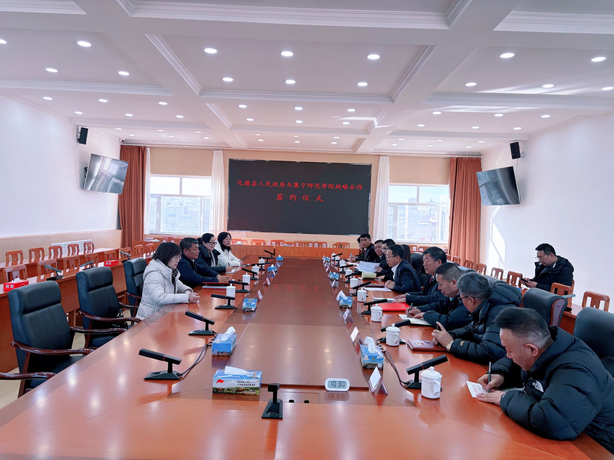 为深入推进校地协同发展,提升高校服务地方经济社会能力,1月27日,集宁师范学院与化德县人民政府校地战略合作签约仪式在化德县举行。集宁师范学院党委副书记李景杰与化德县人民政府副县长柴鸿博代表双方签署《校地战略合作框架协议》。
