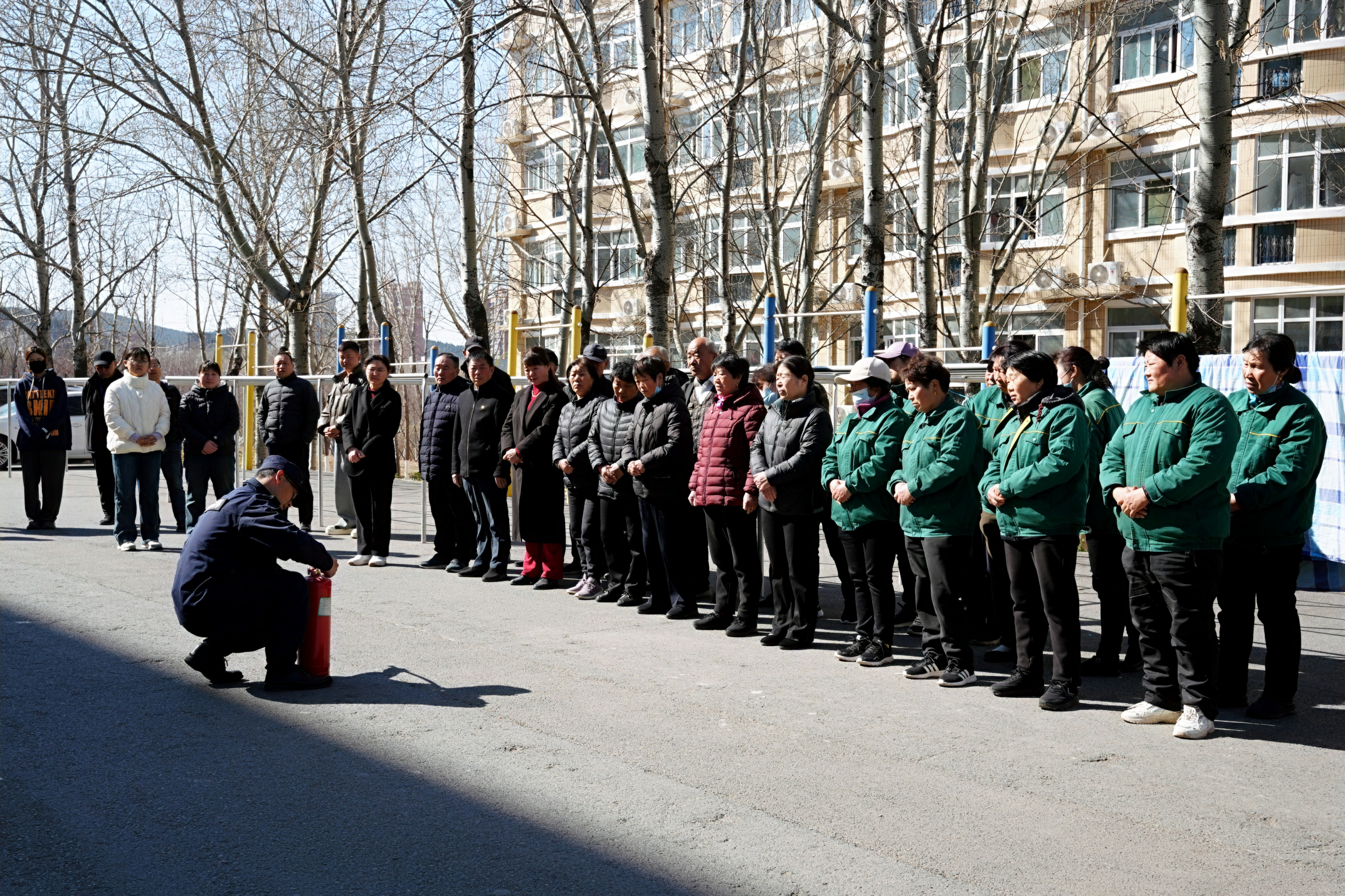 为进一步加强校园消防安全管理水平,全面提升学生公寓管理人员应急处置能力,3月18日下午,党委学生工作部和安全保卫处面向“一站式”社区管理人员和物业人员开展消防安全应急演练活动。党委学生工作部部长徐林哲,安全保卫处副处长盛宏溟,党委学生工作部副部长王涛以及“一站式”学生社区、物业公司全体人员参与演练,共同淬炼应急救援实战能力。