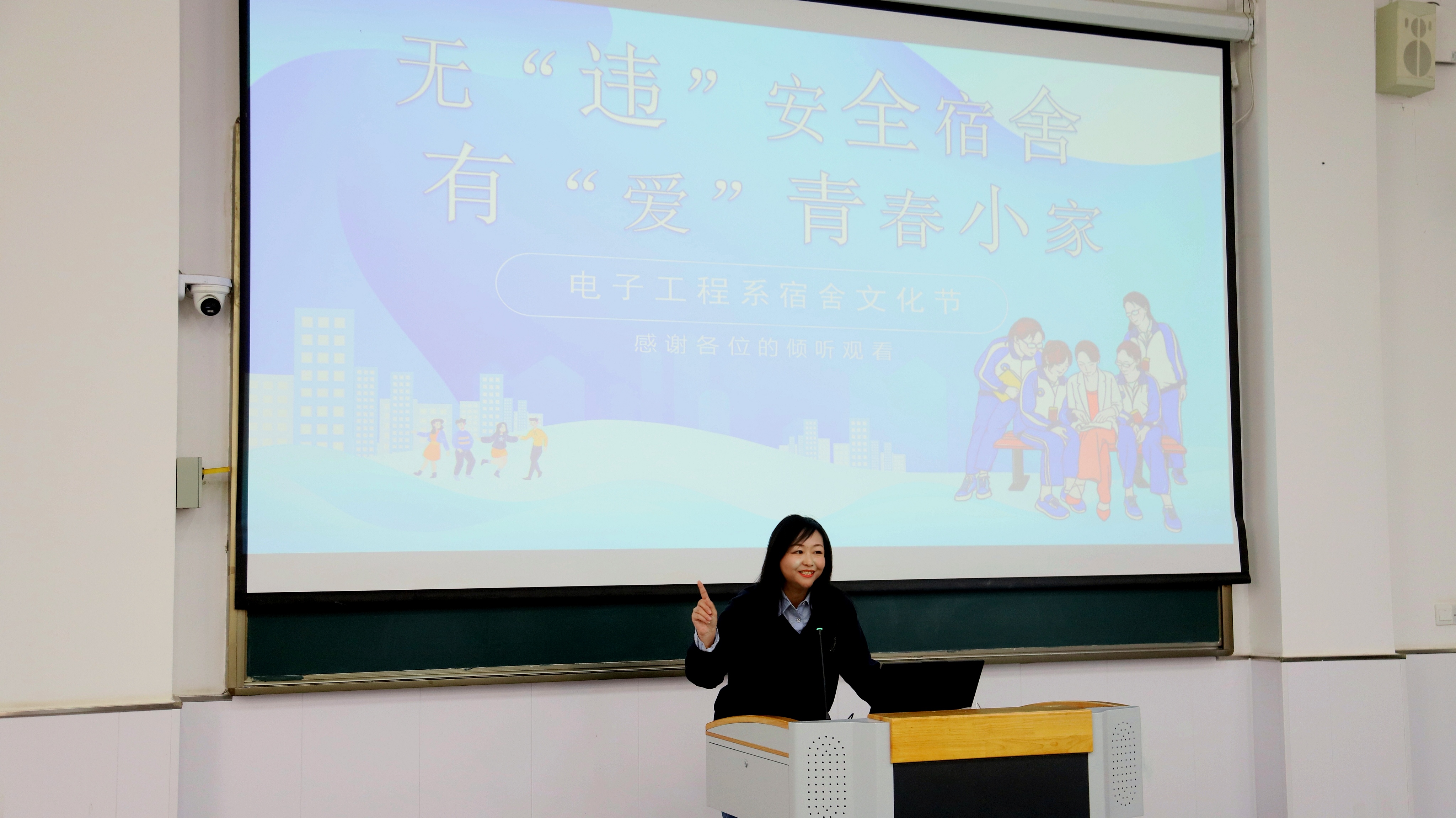 为丰富寝室文化生活,涵养学生互助互爱的优良品格,电子工程系于10月14日,在公二教室,专题开展“安全温馨宿舍,有爱青春小家”宿舍文化节活动,系部学生代表及各宿舍长共同参与,学办主任李楠主持活动。