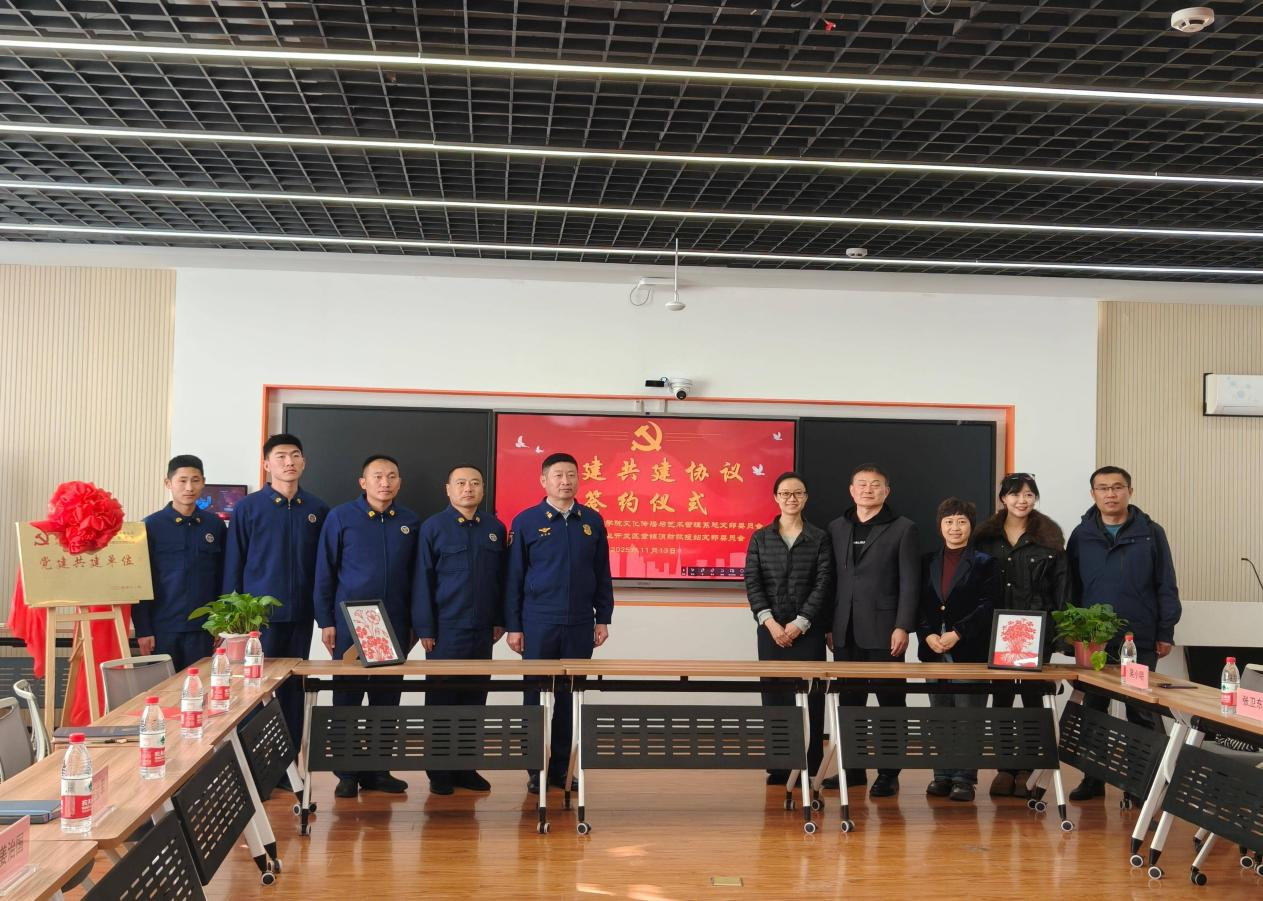 济南高新技术产业开发区章锦消防救援站党支部是文化传播与艺术管理系党总支党建共建单位。双方在党组织建设、消防宣传教育、志愿服务、文化共建等方面达成党建共建合作协议,以党建引领,实现“育人” 与 “服务” 共赢。