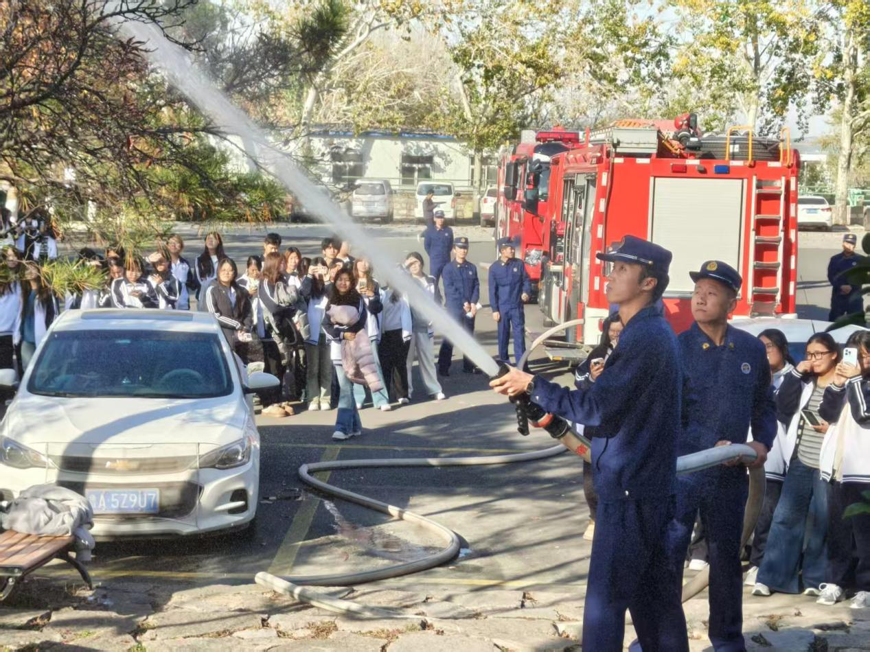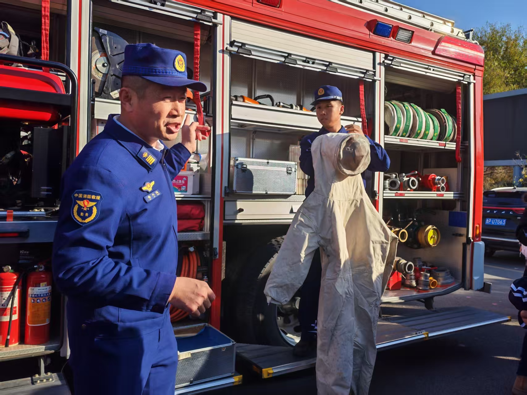 宣讲结束后,停靠在广场的消防车成为全场焦点,指战员逐一打开工具箱,向各方参与人员展示水带、水枪、空气呼吸器、破拆工具等专业消防装备,并结合文传系提出的“校园场景应急需求”,细化讲解装备功能与操作流程。在消防员的指导下,师生实际操作体验应急处置技巧,通过实际操作,真正做到“懂原理、会操作、能处置”,全方位提升了火灾应急处置能力。