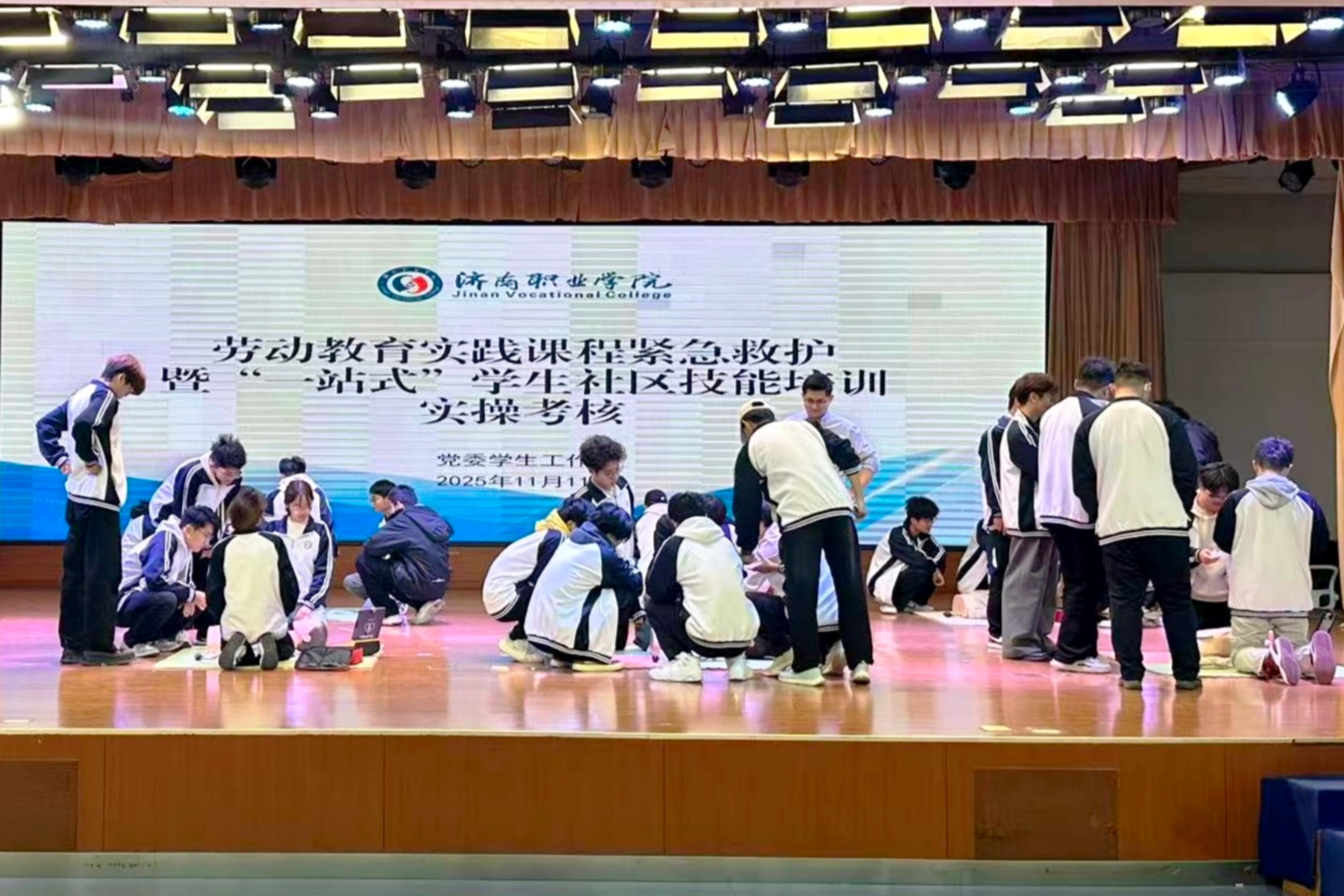 为扎实推进劳动教育实践,全面提高学生应急救护能力,11月7日、11日,学院在惟实楼风华堂分别开展了第六期、第七期劳动教育实践课程紧急救护暨“一站式”学生社区技能培训。培训特邀济南市天桥区红十字会讲师万悦瑞、朱传瑞,以及历城区红十字会讲师原阔来校授课,学院学前教育系劳动教育课程教授田丽红、副教授吕燕担任校内助教,全程协同指导。财经商贸系2025级全体学生及其辅导员老师共同参与培训,并全部通过实操考核。