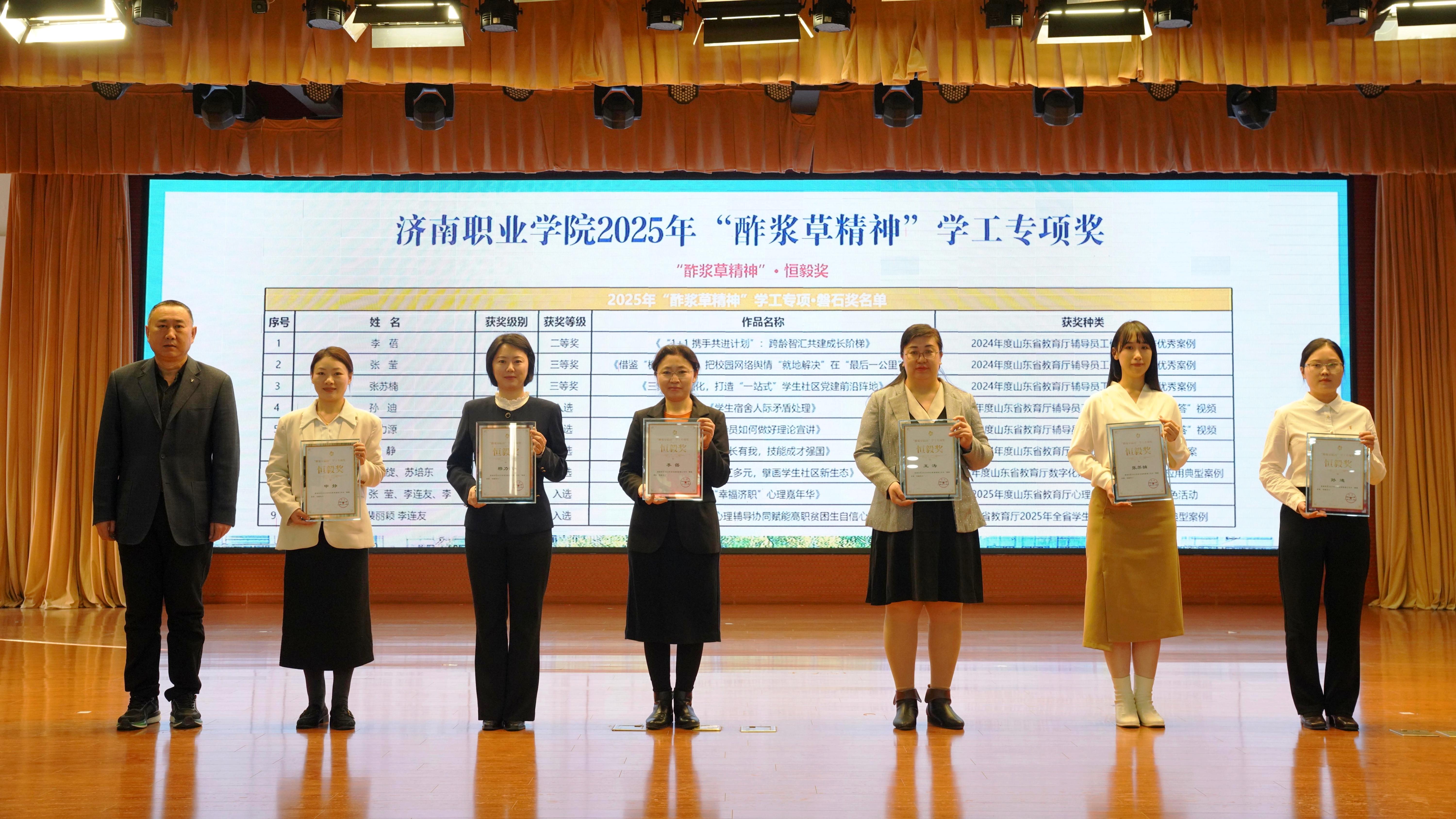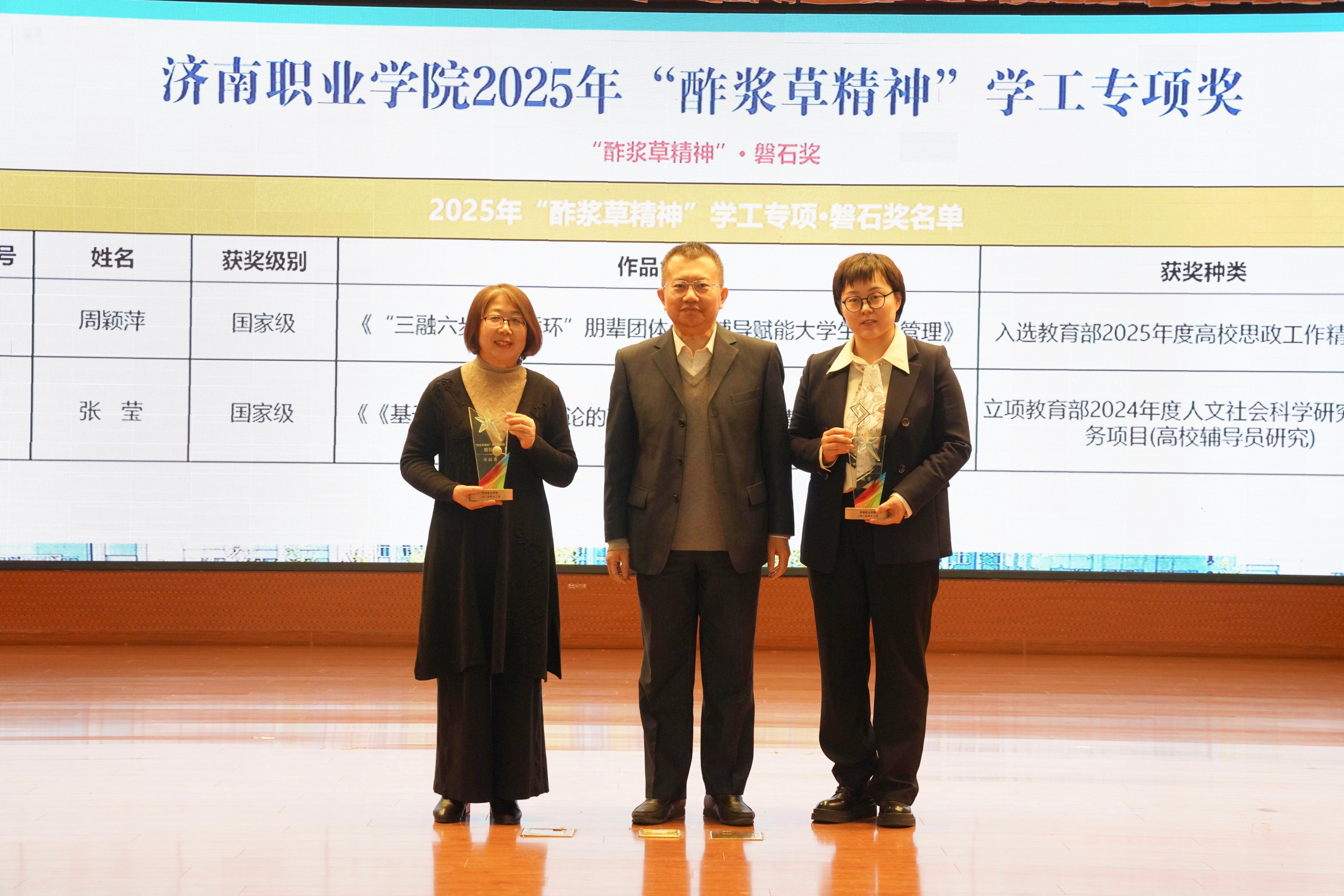 学院特别设立“酢浆草精神”学工专项奖,用以表扬和激励在学生工作中表现突出的集体与个人。苏旭勇、熊爱军、吕如浩分别为荣获“磐石奖”“恒毅奖”“砥柱奖”的学工代表颁奖。