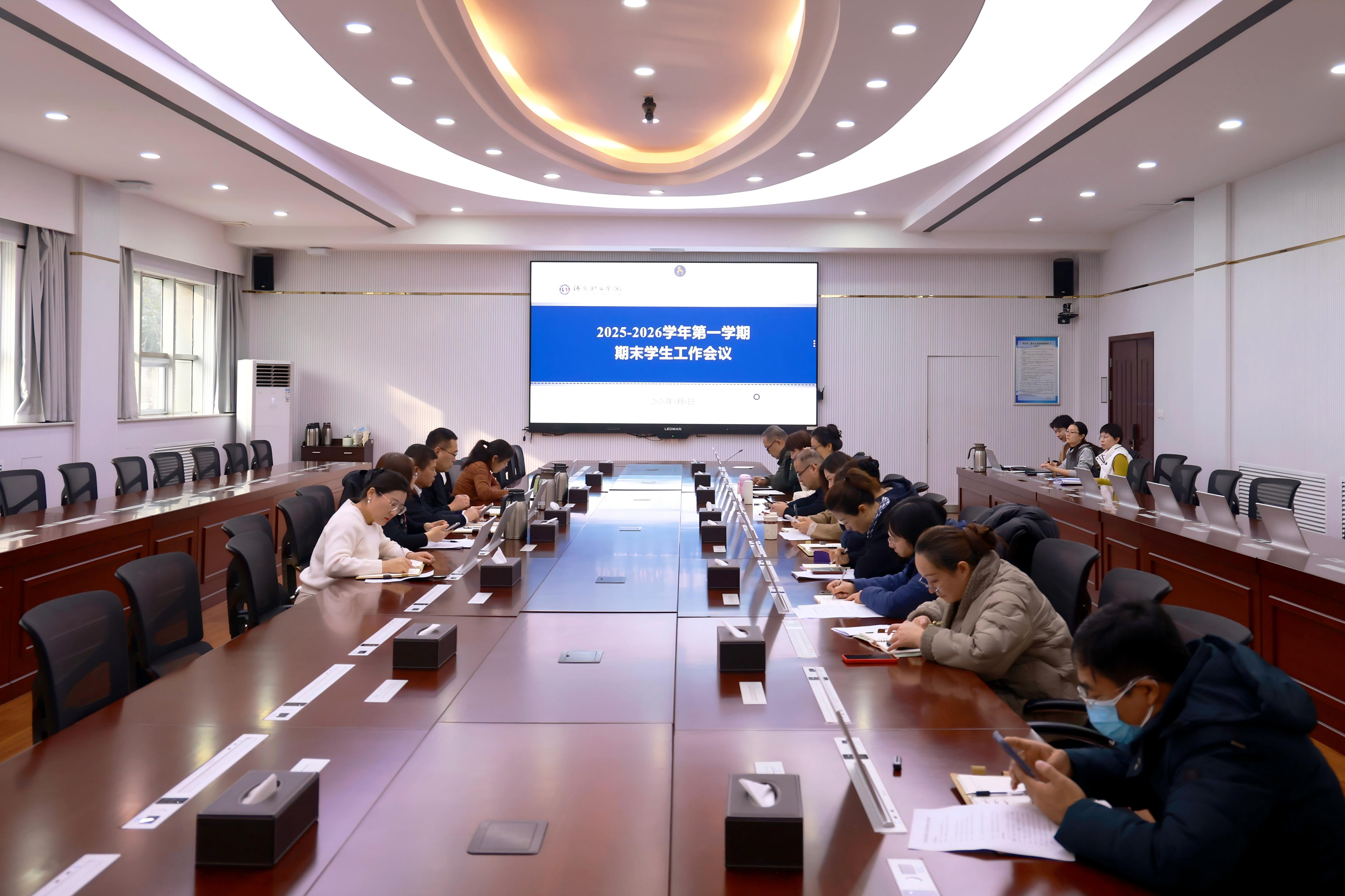 徐林哲就期末阶段学生工作作出部署,强调各系部要协同落实以下重点任务:一是强化“一站式”学生社区管理,重点做好宿舍安全与环境卫生整治,营造整洁有序的生活氛围;二是统筹安排寒假前后相关工作,做好考风考纪教育、假期安全管理及留校学生服务保障;三是扎实开展送温暖与实地家访活动,确保各项关怀举措落到实处。