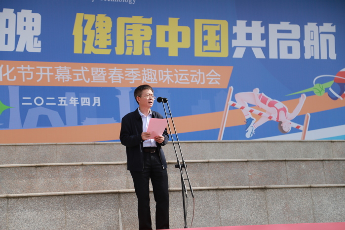 4月24日,我校2025年体育文化节开幕式暨春季趣味运动会在贾汪校区田径场正式拉开帷幕。副校长魏勇出席活动并致辞,学工处、团委、基础课教学部(体育课教学部)相关领导及各二级学院领队、参赛选手、观众共计一千五百余名师生参加活动。