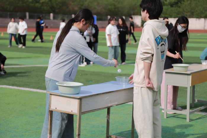 趣味运动会共设有90秒跳绳、筷子夹乒乓球、跳大绳、赶小猪、摸石头过河、趣味飞盘、背对背带球冲锋、盲投飞镖八个活动项目。在活动中,同学们遵守规则、认真参与、积极配合、相互鼓励,充分展现了苏安学子积极向上、勇于拼搏的精神风貌。