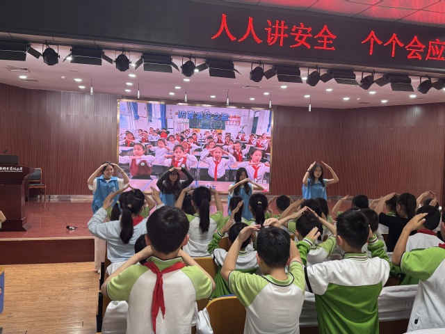 活动过程中,学生志愿者结合动画视频和PPT,系统讲解地震、火灾、洪水等常见灾害的避险常识。通过模拟地震波传播示意图等趣味科普,帮助孩子理解灾害原理。李嘉鑫老师通过故事化的方式讲解灾害应对中的集体主义精神、互助精神。通过播放防灾知识短片,穿插灾害中涌现的英雄事迹,引导学生理解“人民至上、生命至上”的理念。活动最后,志愿者带领全体小学生共同唱跳手舞《防震减灾之歌》,并通过“安全标志拼图”“应急物资收纳赛”等游戏环节,让小学生在实践中掌握急救包使用、逃生路线规划等技能。