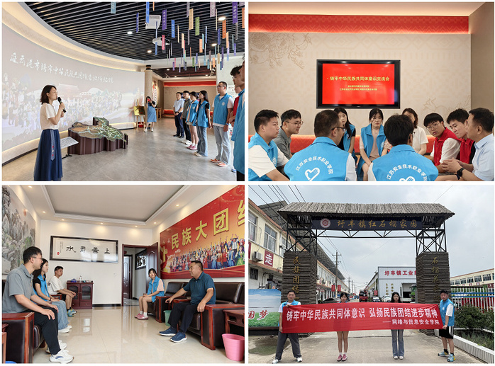网络与信息安全学院“红石榴籽”实践团通过历史溯源、互动体验与基层探访,走访省内多座城市,层层深化对铸牢中华民族共同体意识的认知。淮安市中国漕运博物馆内,不同民族的生产工具、聚居习俗展陈,勾勒出各民族在漕运体系中守望相助的文明画卷,让“多元一体”的历史脉络清晰可触。连云港市铸牢中华民族共同体意识体验馆,队员们通过VR试穿民族服饰、体验非遗技艺实操和3D投影历史场景等互动项目,让抽象理念变得可感可及。微纪录片《我们在一起》中各族同胞互帮互助的故事,更让团结之情直抵人心。在连云港市灌云县圩丰镇“红石榴”家园,全国民族团结进步模范个人、回族党员许善才的事迹令人动容。队员们深刻体会到,民族团结的种子正在基层沃土中扎根生长,纷纷表示将继续以青春视角挖掘民族团结故事,用实际行动传承民族团结精神。
