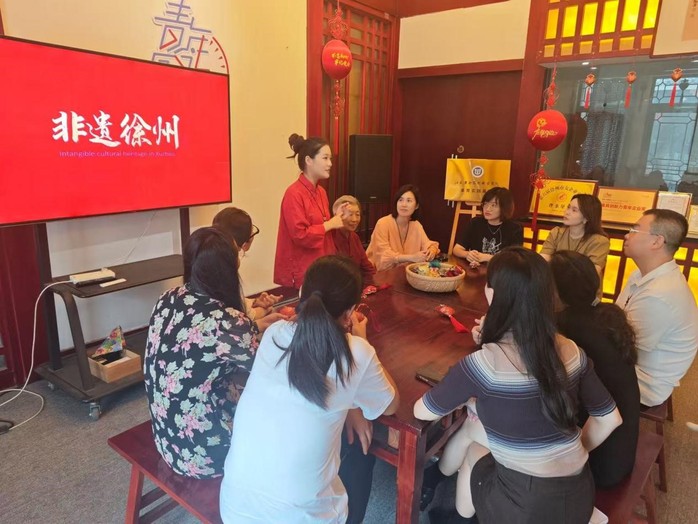 国家非物质文化遗产徐州香包的传承人王秀英老师亲临现场,为商贸与人文学院的老师们讲述了制作香包背后的动人故事。王秀英老师从事香包制作已逾数十载,凭借着对传统技艺的热爱与坚守,将徐州香包这一古老的艺术形式不断传承创新,其代表作“针棒”香包因造型独特、中草药配方讲究,曾受到习近平总书记的赞赏。她的讲述让老师们深刻感受到徐州香包所承载的深厚文化底蕴以及代代相传的匠心精神。