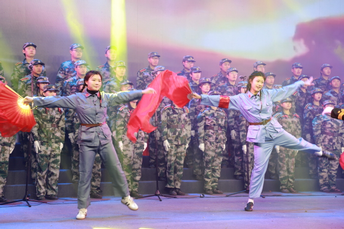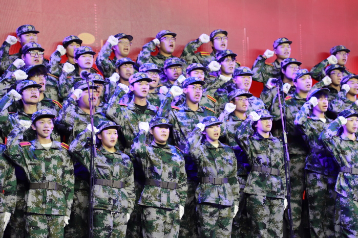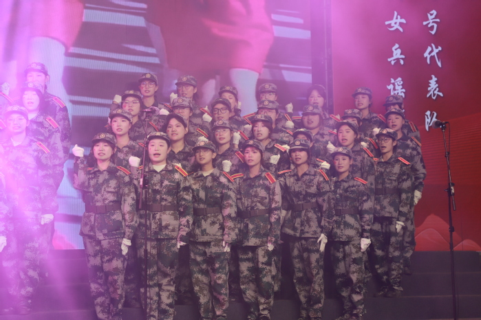 比赛现场,各参赛连队迈着整齐步伐依次登场,新生们身着笔挺的军训服,目光坚定,精神饱满,展现出新时代大学生昂扬向上的精神风貌。来自五个二级学院的十二支代表队为全场观众带来了二十四首曲目,《歌唱祖国》、《祖国不会忘记》等歌曲将“家国情怀”融入歌声,引领青年在歌声中坚定理想信念,抒发对祖国的无限深情与崇高敬意;《团结就是力量》、《学习雷锋好榜样》节奏铿锵、精神昂扬,号召青年们在集体中凝聚力量,在奉献中砥砺前行;《保卫黄河》、《强军战歌》唱出了同学们的豪迈气势与强军报国的坚定决心,展现了新时代青年的血性担当;《中国军魂》、《冲锋号》气势如虹,听党指挥、能打胜仗,让全场观众感受到同学们的坚定信念和不变决心;《血染的风采》、《女兵谣》饱含深情,以悠扬的歌声将革命岁月与家国故事娓娓道来,传递出对历史的铭记与对先烈的缅怀;《没有共产党就没有新中国》、《复兴的力量》表达出了新时代青年怀揣梦想、坚定信念、紧跟党走、追逐未来的精神风貌;《灯火里的中国》、《天耀中华》唱出了身处新时代的新青年对祖国的美好祝愿,以及不断谱写崭新诗篇的使命与担当。