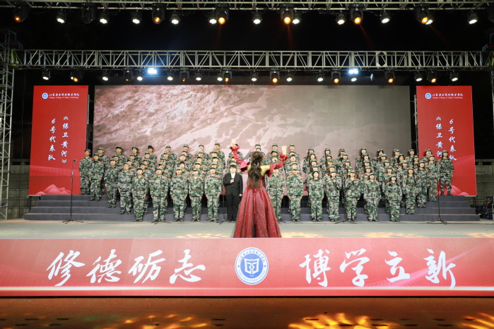 秋风送爽,军歌嘹亮。为深入学习贯彻习近平总书记在纪念中国人民抗日战争暨世界反法西斯战争胜利80周年大会上的重要讲话精神,庆祝中华人民共和国成立76周年,激励青年学生筑牢信仰之基、涵养家国情怀,矢志不渝听党话、跟党走,10月20日,由校团委、马克思主义学院、校关工委联合主办的“歌声里的思政课”——第六届校园文化艺术节开幕式暨2025级新生军训合唱比赛在贾汪校区隆重举行。党委副书记成伯君,党委委员薛莲、李志浩,团委、学工处和各二级学院相关负责同志,马克思主义学院全体教师、新生辅导员、承训部队教官以及2025级新生参加活动。