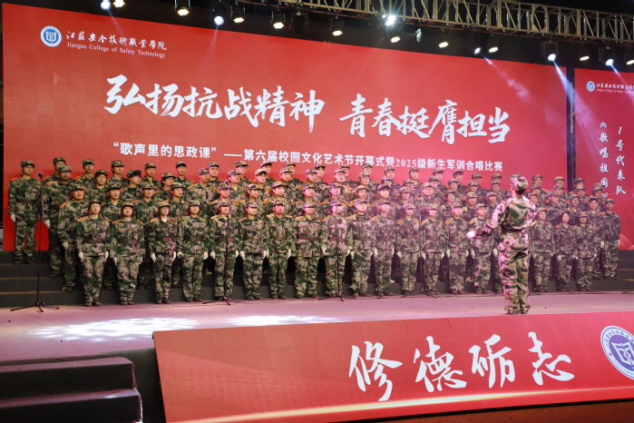江苏安全技术职业学院举办“歌声里的思政课”暨2025级新生军训合唱比赛