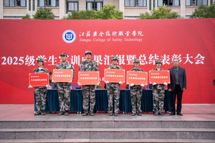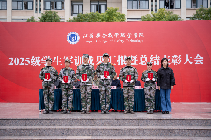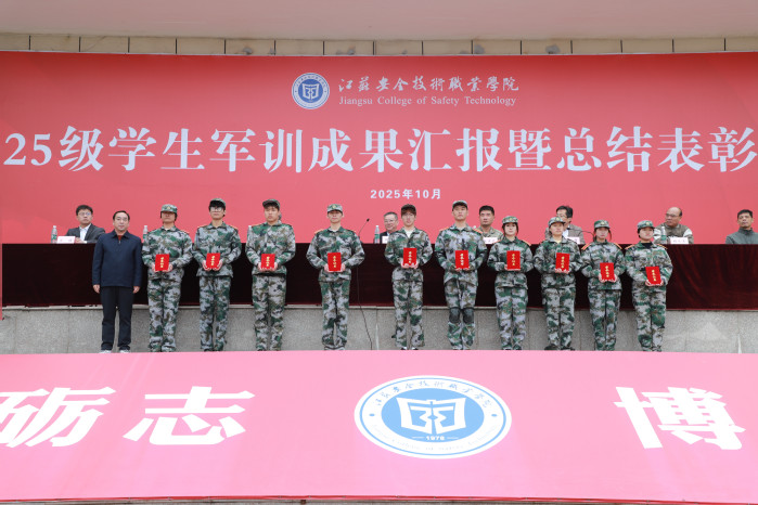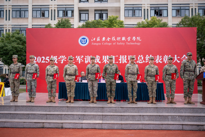 江苏安全技术职业学院隆重举行2025级新生军训成果汇报暨总结表彰大会