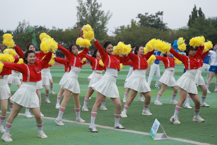 随后,健美操比赛、团体操表演依次登场,满目青春、活力四射的表演将现场气氛推向高潮。