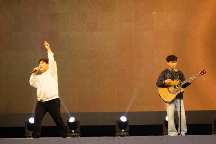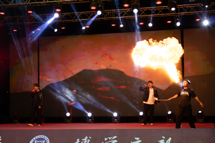 开场舞《花儿为什么这样红》以灵动舞姿抒发赤诚情怀,尽显青春本色;云龙校区辅导员老师们带来的《New Boy》活力满格,用欢快旋律勾勒出师生同乐的温馨画卷;《花海》的浪漫悠扬、《Abracadabra》的动感热辣轮番上演,迅速点燃现场氛围;说唱《麒麟》搭配震撼喷火表演,炸裂舞台点燃全场热情;古风《兰亭序》琴韵流转、意境悠远,尽显东方美学的独特韵味;独舞《归程》情感真挚饱满,细腻演绎引发观众深度共鸣。