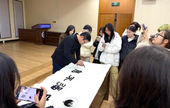 为弘扬优秀传统文化,丰富校园文化生活,提升学生人文素养和审美情趣,11月26日,学校邀请中国书法家协会会员、江苏省青年书法家协会理事张禹来校,开展“书体流变——书法的基本脉络”专题讲座,并进行现场创作示范与指导。