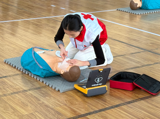 在个人赛环节,选手们沉着应战,独立完成心肺复苏、AED使用等关键操作。从快速评估现场环境、判断伤者意识,到大声呼救联动支援,再到规范的胸外按压与精准除颤,每个步骤都严谨规范、高效有序。选手们神情专注、动作娴熟,展现出扎实的技能功底与出色的临场应变能力。在团体赛环节,选手们分工明确、配合默契,每个动作都规范到位、干净利落。在紧凑的赛程中,各队高效完成包扎任务,娴熟的技能操作与紧密的团队协作赢得了一致好评。
