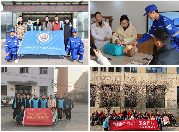 学校立足专业特色,组织青年志愿服务队伍走出校园、下沉基层,把专业服务与应急安全培训送到群众家门口。“苏小安”应急救援志愿服务队先后走进周边社区及幼儿园,面向社区工作人员、居民以及教职工开展心肺复苏、海姆立克急救法等应急救护技能培训,通过细致讲解与手把手教学,切实提升公众自救互救能力。网络与信息安全学院志愿者走进社区,带领小朋友制作花灯欢度元宵,传递传统节日温情,他们还前往了贾汪区大泉街道残疾人之家,开展常态化扶弱助困志愿服务,陪伴残障朋友开展手工活动,用真诚关爱点亮他们的生活。“螺丝钉”志愿者协会聚焦“银青代际融合”,走进九如城康养中心开展“‘樱’为有你,爱暖银龄”志愿服务,志愿者们陪伴老人亲切交谈、推轮椅共赏初绽樱花,以细腻关怀满足长者精神慰藉与户外出行需求,生动诠释了“螺丝钉”精神在平凡中的奉献与坚守。系列接地气、惠民生的服务,展现了我校青年扎实的专业素养与深厚的人文关怀。
