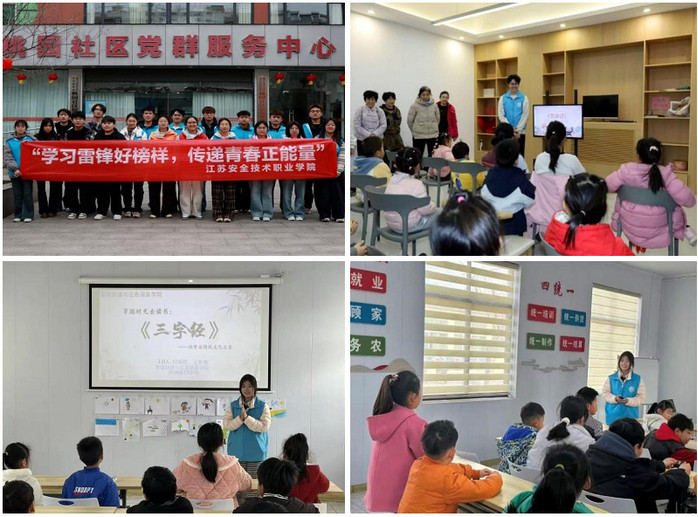学校以常态化志愿服务为抓手,持续关注残疾群体与少年儿童成长需求,以爱心陪伴守护成长、传递温情。助残服务方面,网络与信息安全学院组织志愿者前往徐州市贾汪区大泉街道残疾人之家,协助残疾朋友完成手工制作、物料整理、成品分装等工作,在温和耐心的协作互动中,拉近与残疾群体的距离,增强残疾朋友的归属感与幸福感,推动助残志愿服务走深走实。在助幼服务方面,3月14日,工业安全与职业健康学院志愿者走进徐州市经开区金山桥街道桃园社区开展少儿手工创意志愿服务活动,通过趣味破冰、经典共读、一对一手工指导等形式,在陪伴中引导孩子们感悟互助友爱的雷锋精神。智能制造与应急装备学院志愿者走进乡村留守儿童课堂,以《三字经》经典诵读为核心,用故事讲解、动画传唱等生动形式,为孩子们讲授成长哲理,让中华优秀传统文化与雷锋精神浸润童心,以温情陪伴守护留守儿童健康成长。