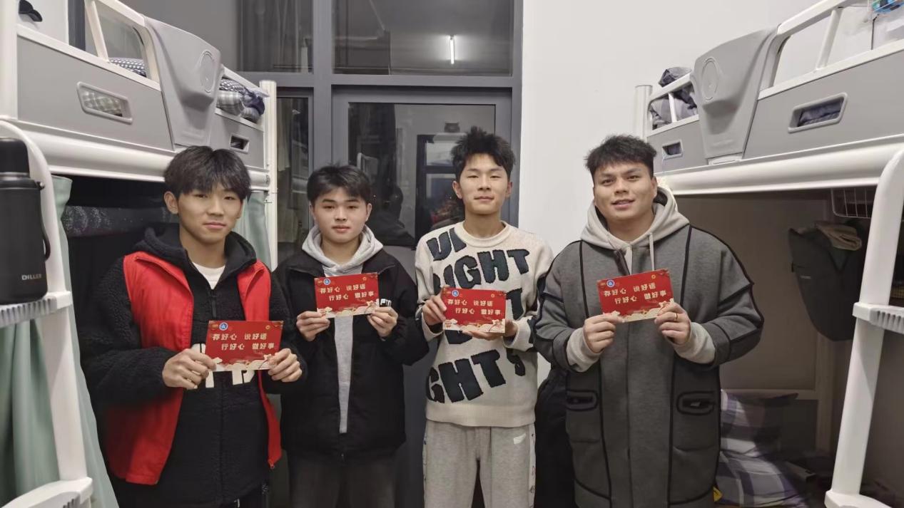 此项活动背景是在北苑社区党支部积极发挥党建引领作用下,探索形成成效较强的党建+文化、党建+服务的育人模式,努力培育和践行社会主义核心价值观,助力大学生健康成长。这项活动的目的提醒学生安全离校以及寒假安全等事项。卡片的正面是航空工程学院党总支王玉安书记提笔的“存好心、说好话、行好事、做好人”12个字,代表王书记对于航院学子做四好青年的殷切希望,卡片背后包括了离校小妙招,外出要注意,居家不能忘三个小标题,提醒学生离校注意事项和寒假安全须知。