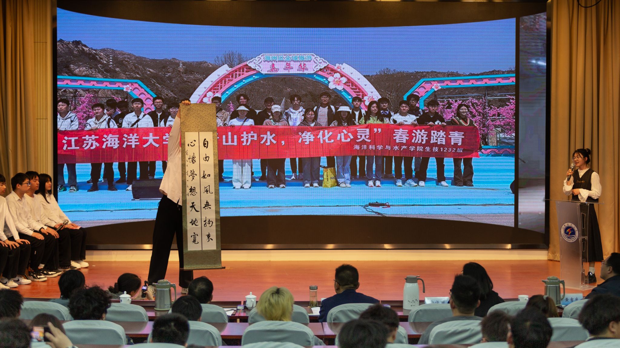 4月2日,江苏海洋大学第三届社会主义核心价值观教育主题班会评选决赛暨示范公开课在会议中心黄海厅顺利举办,本次评选活动经过学院初赛、学校复赛环节,海洋科学与水产学院等六支代表队成功入围决赛,进行展示。校党委常委、副校长郑利军,校党委常委、宣传部部长王波,教务处处长安俊丽,教学质量管理处处长孙国红,校团委书记黄吉庆出席本次活动并担任评委,各学院200余名师生代表到场观摩学习。