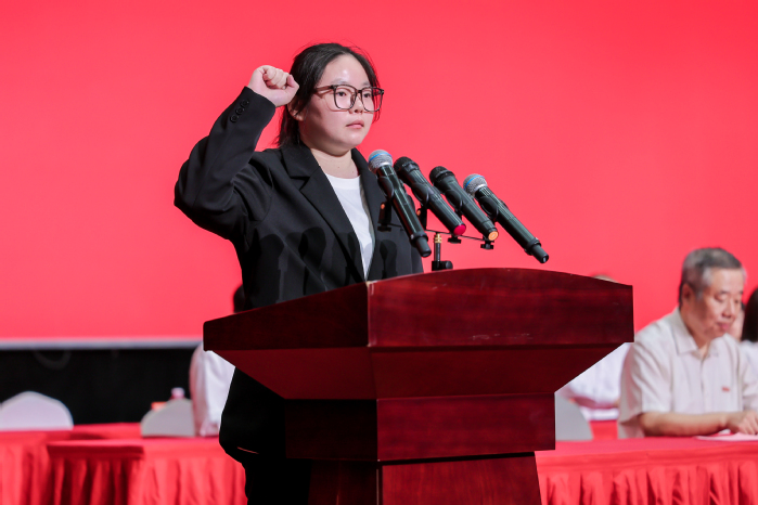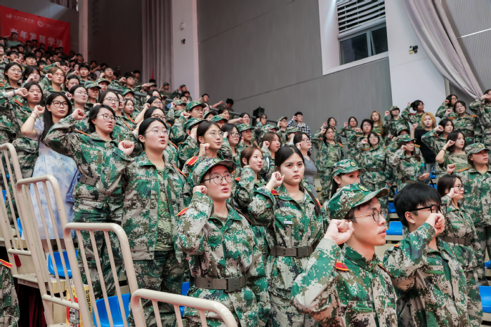全体新生举起右臂庄严宣誓,以铿锵誓言许下青春承诺,誓词声浪响彻礼堂,将典礼氛围推向高潮。