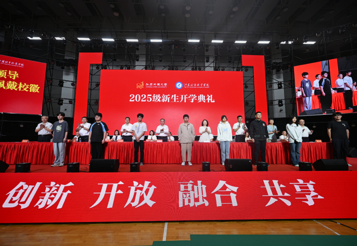 序章将展,新篇待绘;金秋逐梦,启智远航。江苏开放大学(江苏城市职业学院)2025级新生开学典礼于9月27日上午9点30分在应天校区体艺馆盛大举行,各市县开放大学设置分会场,云端观礼,共赴盛会。来自全省73家市县开放大学的2万多名开放教育学生和来自祖国各地的2109名高职教育学生共聚一堂,启航逐梦。