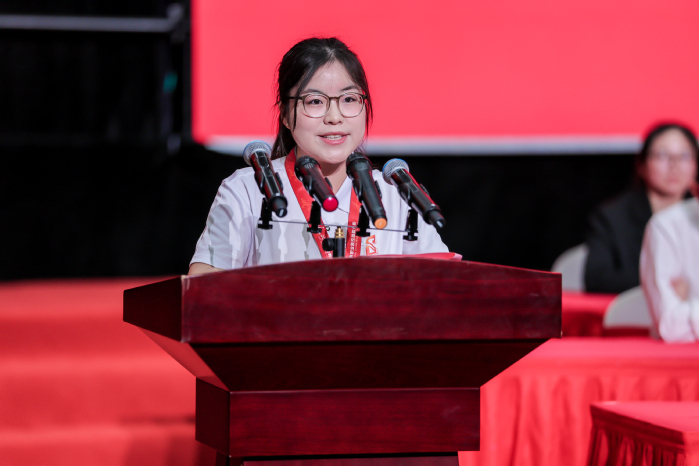 在校生代表——商学院华杉杉分享了备赛宝贵经验,鼓励同学们既要在课堂上汲取新知,也要在实训室锤炼技能。
