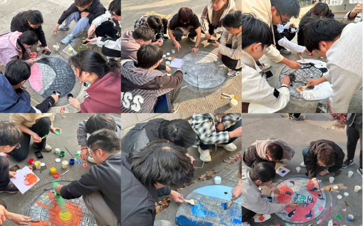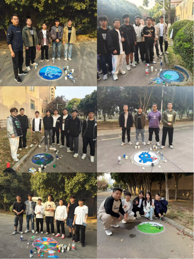 参与活动的23级学生刘同学说:“同学们的巧手,不仅把校园内的井盖转变为传递正能量、丰富校园文化底蕴的媒介。在团队合作中,我们也深刻领悟到集体的力量来源于成员共同的目标和团结协作。” 24级王同学表示:“井盖虽小,却是校园的‘眼睛’。通过彩绘,我们用创意表达环保态度,希望提醒更多人关注身边的绿色之美。”当同学们站在自己的作品前合影留念时,脸上洋溢着灿烂的笑容。