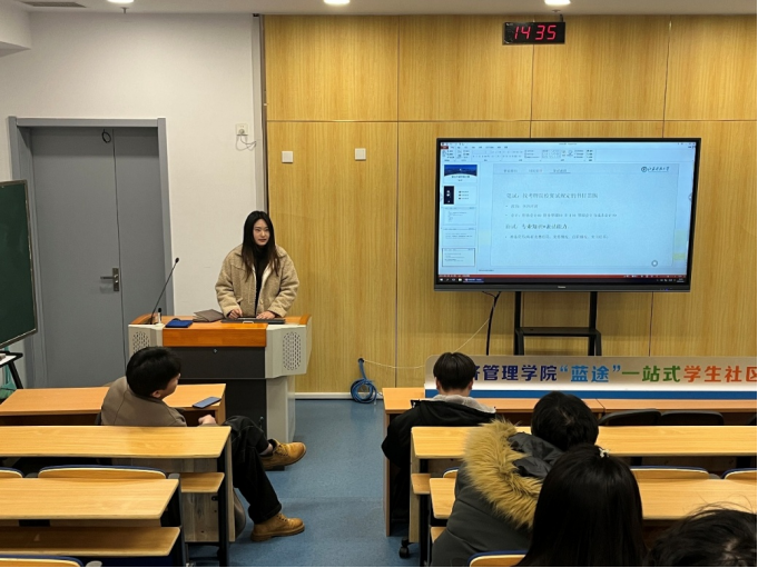 为扎实推进2025届毕业生考研工作,3月6日,经济管理学院“蓝途”一站式学生社区成功开展“研途有光·筑梦未来”考研复试指导会,旨在以“考生视角+院校视角”双轨并行的模式,为考研学子提供从备考策略到调剂实战的全程指导。院教务办研究生招生老师储秋蓉、学工办老师祖梦思、叶桥键,2024届优秀考研学子王星晔、高昊天、倪嘉辉及2025届考研学子参与会议。会议由叶桥键主持。