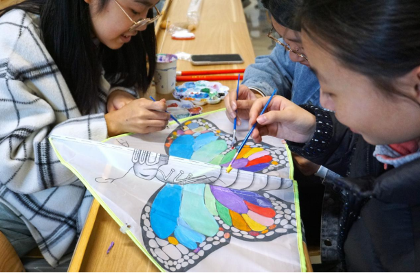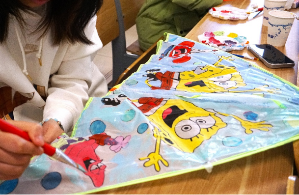 "风筝古称‘纸鸢’,唐代起便承载着祈福康健的美好寓意。"活动伊始,心理协会负责人在学院"自信"一站式社区,以历史典籍与《清明上河图》风筝场景为引,阐释"天人合一"传统文化中的心理疗愈智慧。参与者领取空白风筝后,可自由选择"星空疗愈""建筑记忆""情绪图腾"三大主题进行创作,协会特别配备丙烯颜料、流苏挂饰及心理健康语录贴纸,让传统手工艺与现代心理学产生奇妙共振。