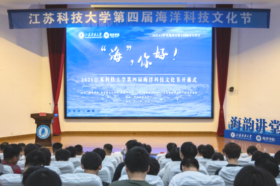 为迎接第十七个“世界海洋日”和第十八个“全国海洋宣传日”,6月6日上午,由海洋学院、马克思主义学院、党委研究生工作部、继续教育学院、江苏省通信学会水下通信专委会、灯塔“一站式”学生社区联合举办的江苏科技大学第四届海洋科技文化节在梦溪校区演讲厅隆重开幕。南京信息工程大学海洋科学学院副院长林文明教授,中国人民解放军陆军军事交通学院镇江校区部分官兵代表,中国船舶集团有限公司第九期中层干部工商管理培训班相关学员,海鹰加科、中船鹏力、中天海洋等行业知名企业代表,学校相关职能部门和学院领导、师生等300余人出席开幕式。开幕式由海洋学院党委副书记卜江春主持。