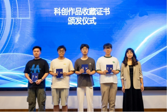 在学生科创作品展示环节,由海洋学院“一站式”学生社区“贝壳”实验室、学堂孵化的两项代表性成果成为焦点:基于SimpleFOC的自平衡莱洛三角形装置和水下长基线高速集群目标定位及通信系统。这些作品不仅展示了我院学生对海洋科技的探索热情,也彰显了贝壳实验室连接课堂与实践的创新育人成效,党委研究生工作部部长徐剑为学生代表颁发了科创作品收藏证书。