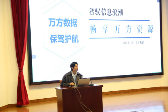 随后,三场针对大学阶段常用电子资源知网、万方和超星的专题培训依次展开。中国知网培训讲师李晓慧老师以“用好中国知网,筑牢科研基础,从‘会检索’到‘巧运用’“为主题,从知网基本情况、大学生使用必要性入手,详细解读了期刊、学位、会议、专利等各类文献的特点与价值,并重点演示了文献检索、阅读与下载的实用技巧。万方数据培训讲师李子豪老师带来“智驭信息浪潮,畅享万方资源”专题分享,带同学们领略了万方数据知识服务平台数亿条优质学术资源及多场景科研工具的魅力。超星培训讲师杜成伟老师则以“超星资源与服务一点通”为主题,清晰讲解了超星资源的统一检索方法与各类服务内容。三位讲师的分享干货满满,实用性极强,赢得了同学们的阵阵掌声。
