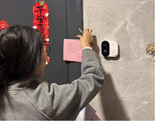 培训结束后,身着统一标识、佩戴工作牌的志愿者们,以蓝途“贴心服务、务实笃行”的精神为指引,穿梭于上悦诗苑小区的楼栋之间。他们礼貌叩门,用通俗直白的语言向居民解读选举政策与提名规则,耐心回应各类疑问,细致协助完成提名票填写。针对独居老人、行动不便的居民,志愿者们格外用心,逐字逐句诵读提名须知,手把手指导填写流程,甚至为轮椅居民托举选票方便勾选。对于住户不在家的情况,志愿者们逐一做好登记并电话通知,确保民主权利不落下每一位居民。这场暖心服务,既让基层选举工作高效推进,更让蓝途“一站式”学生社区的服务温度传递到千家万户。