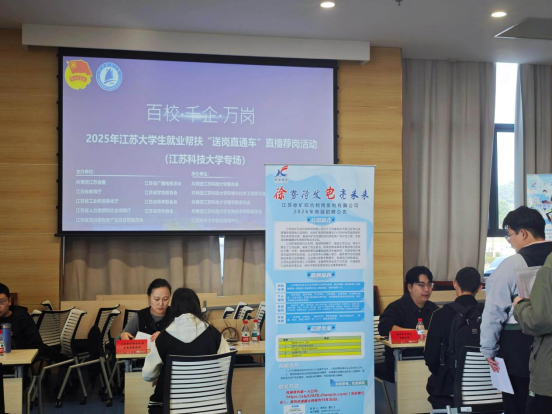 招聘会现场人头攒动,气氛热烈。镇江本地龙头企业如江苏索普(集团)有限公司、镇江奇美化工有限公司等悉数到场,提供了大量与学院专业高度契合的优质岗位。同时,招聘会还吸引了来自扬州邗江区人社局和徐州市人社局组织的多家知名企业组团参会,地域覆盖广、行业跨度大,为毕业生提供了多元化的就业选择,充分满足了不同专业、不同方向毕业生的求职需求。