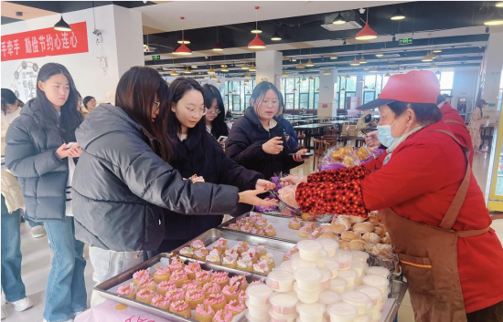 3月5日中午,农林食堂精心筹备了以“三月芳菲季 爱在女神节”的主题活动。精彩的游戏互动,暖心的节日福利,专属的打卡布置,现场一片欢声笑语,幸福的笑容洋溢在每个同学们的脸上。3月8日,茅山食堂精心准备了蛋糕、酸奶、毛绒玩具、饮料等丰富的礼品,为校区师生送上最诚挚的节日祝福。