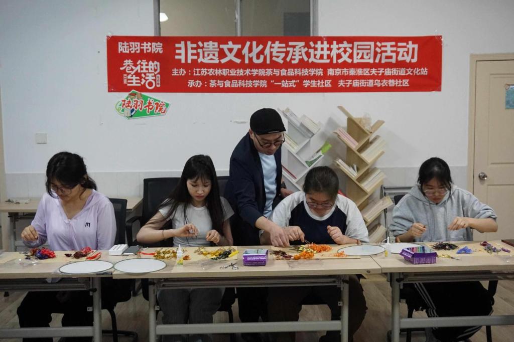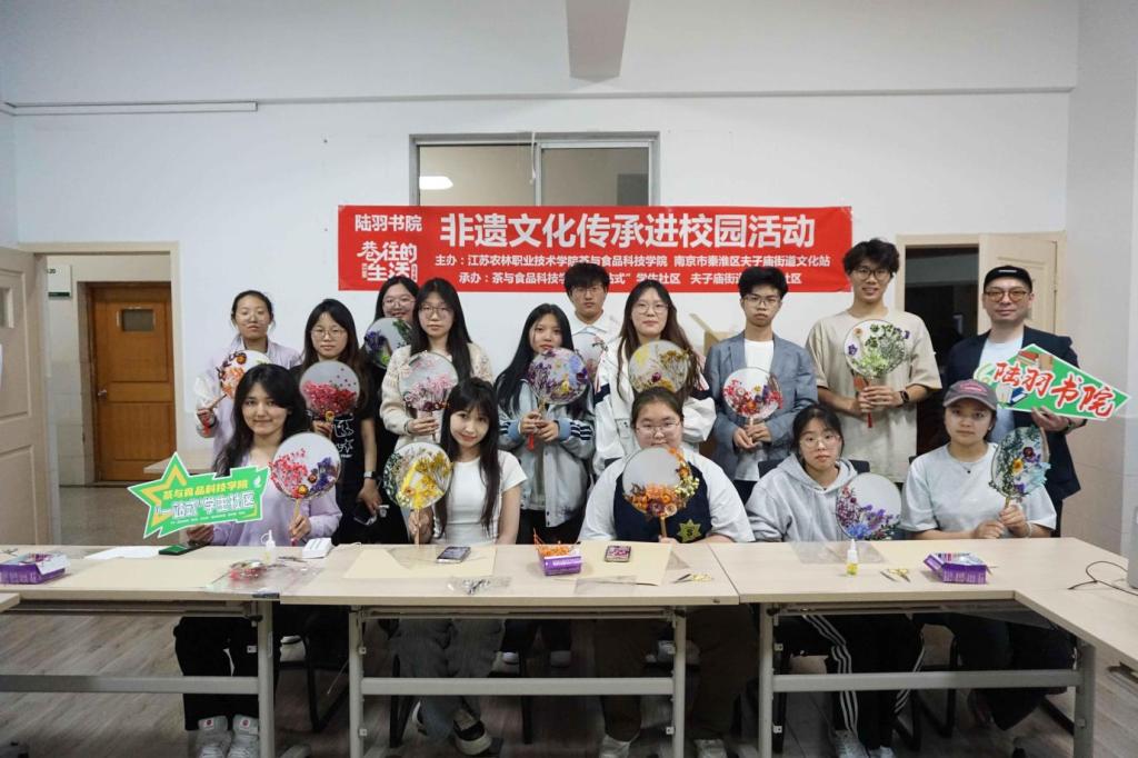 4月27日,茶与食品科技学院团委、“一站式”学生社区联合夫子庙街道乌衣巷社区,在综合楼317活动室举办“迎五四·古韵传情”压花扇手作沙龙,活动通过“非遗讲堂+实践创作”模式,组织青年学子体验传统技艺,通过文化传承厚植爱国情怀。