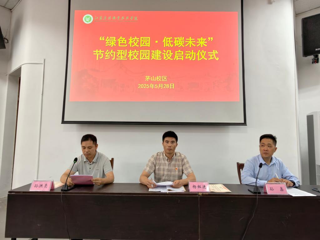 5月28日下午,茅山校区在学术报告厅举行“绿色校园·低碳未来”节约型校园建设启动仪式。校区党总支副书记杨红进、孙鑫及300余名师生代表齐聚学术报告厅,共同开启校区绿色低碳发展的崭新篇章。