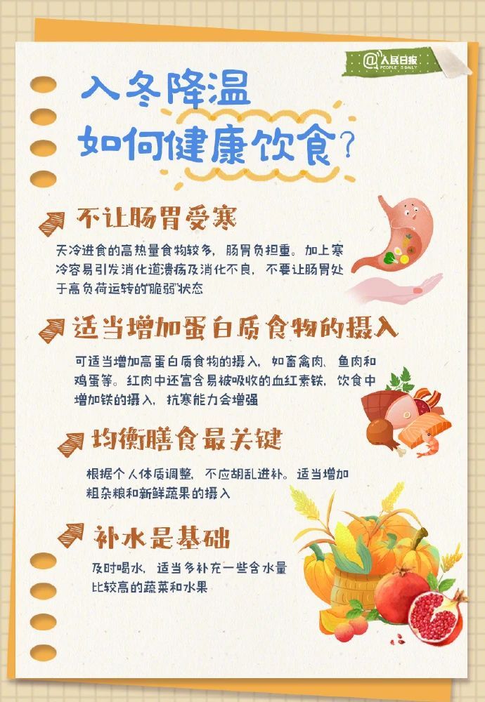 增加新鲜水果和蔬菜的摄入,补充维生素C,增强抵抗力;适量增加热量,选择健康的零食,如坚果和全麦面包,以保持抵御寒冷的热量。