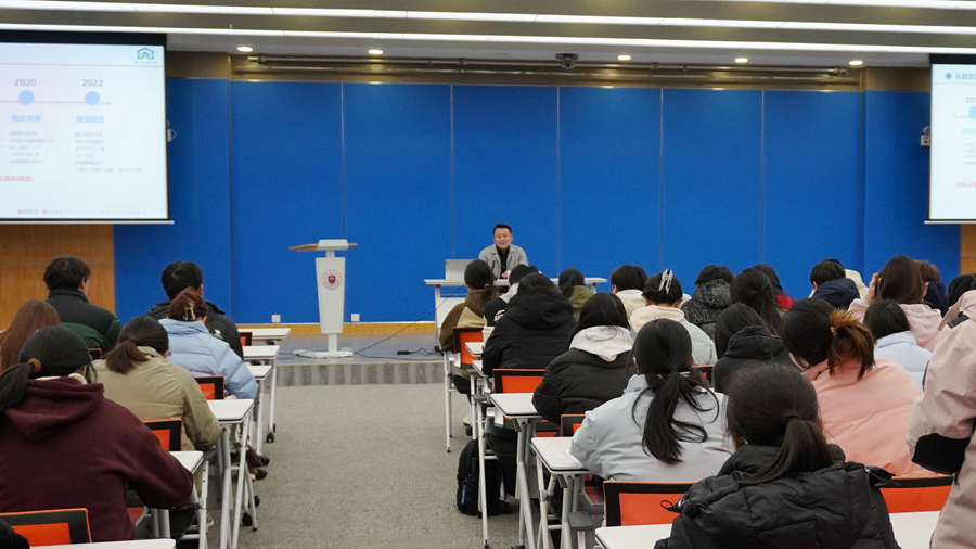 黄磊饱含深情地回忆了在母校学习生活的情景和收获,讲述了当年毕业面对未来选择时的心路历程,分享了自己从校园到就业再到创业的进阶之路。黄磊校友从职场小白到在璨飞光学初试牛刀,到美国耐世特汽车技术研发,再跨界罗克韦尔创造年销售1亿美元的战绩;从多家名企积累经验,到自主创办高新技术企业苏州双泽智能科技有限公司等,每个阶段都藏着成长“彩蛋”。黄磊以自己的成长故事为例,揭秘从实验室到企业家的“通关秘籍”,给同学们带来深刻启发。黄磊向学弟学妹提出三点成长建议,一是要明确目标,合理规划个人发展道路,锚定职业发展方向,树立理性就业观;二是要主动学习,拓宽眼界和视野,增强知识储备,提升应对未来职业挑战的能力;三是要脚踏实地,扎实投入工作实践,不断锤炼自我,在逐步成长中寻找机会、建功立业。