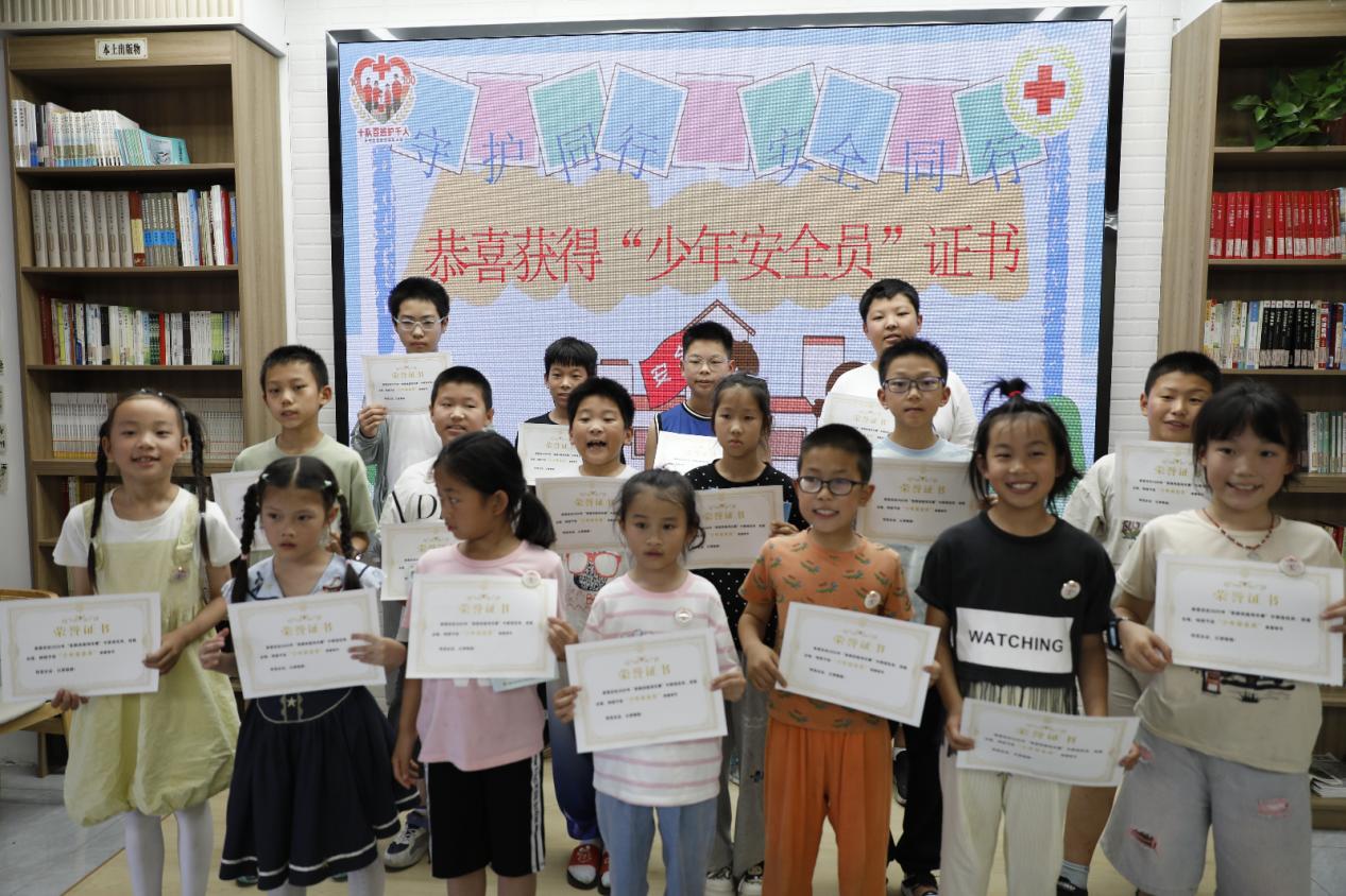 “哪里有‘危险小怪兽’?”石港小学教室里,志愿者话音未落,孩子们瞬间化身“安全小侦探”,交通道口、河沟、农药瓶……乡村隐患被一一“揪出”。“按压要稳,节奏要对,像击鼓一样有力!”“海姆立克,记住‘拥抱式救援’!”“包扎要牢,动作要轻,像给好朋友系围巾。”石南小学、五窑小学课堂上,口诀+“急救大富翁”双剑合璧,重难点被揉进儿歌、掷进骰子,知识蹦进脑袋、技能钻进小手。石港镇图书馆中,知识问答、情景模拟、实操考核三大“闯关赛项”环环相扣,通关娃戴上“少年安全员”勋章,参与协作的家长同步解锁“家长安全员”荣誉称号。五窑小学老师竖起大拇指:“这套急救技能,正是乡村孩子最需要的急救技能!”