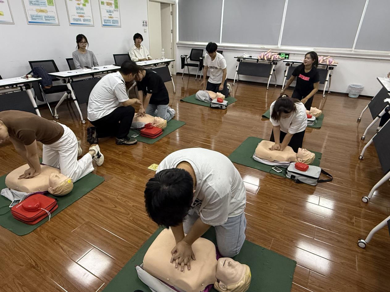 自身急救技能娴熟,教导孩子救命方有底气。为锻造硬核服务力,团队跟着急救导师淬炼真功,紧扣“黄金4分钟”生命法则,通过模拟救援场景强化CPR、AED操作及气道异物梗阻急救技能。志愿者坦言:“这次培训不仅是技能升级,更让我们扛起了‘人人学急救,急救为人人’的责任!”