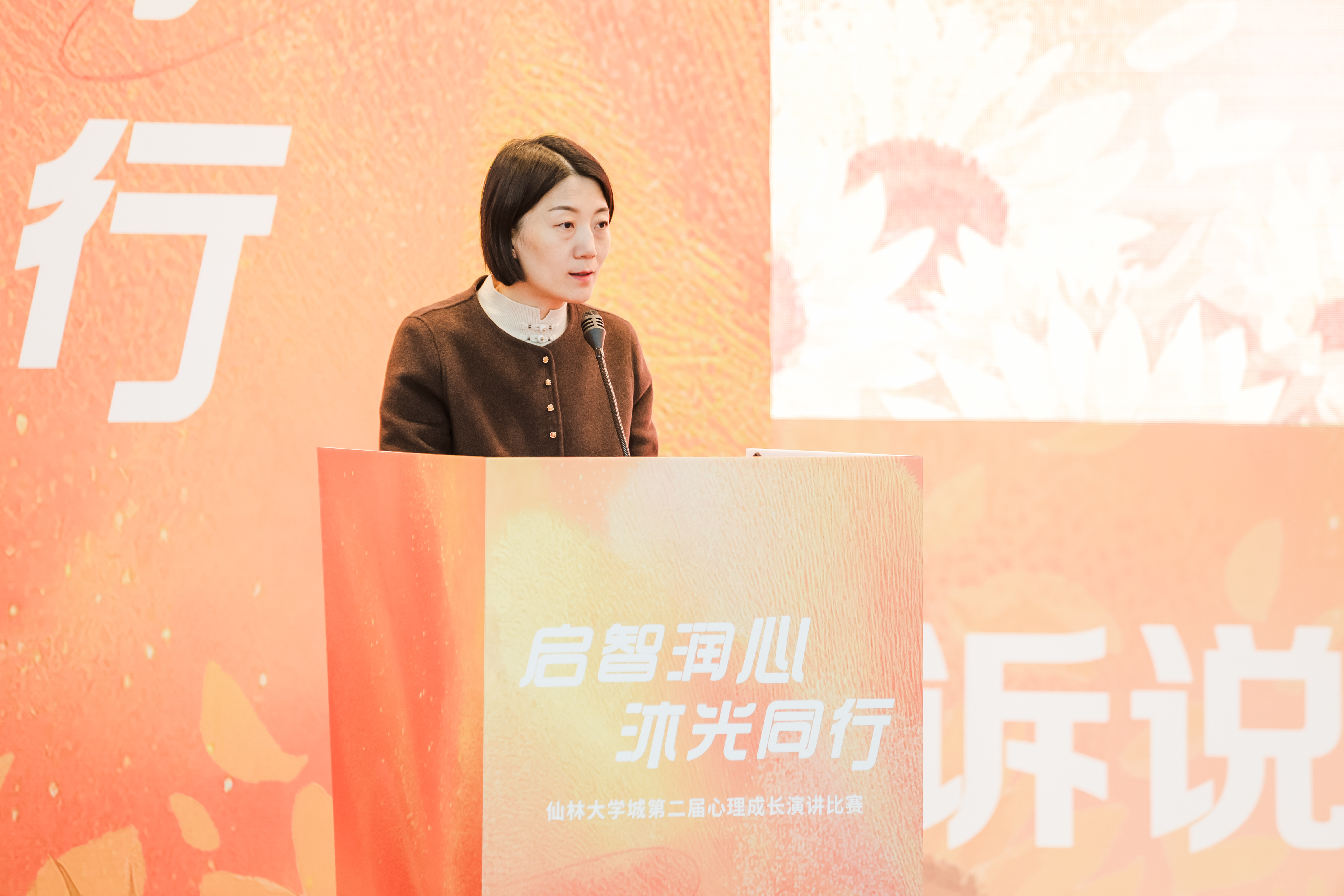 俞敏致欢迎辞。她指出,去年我校顺利承办的“成长的礼物”心理演讲比赛引发了热烈反响,标志着我校心理健康教育品牌化建设的正式启动,同时更加凸显了心理健康教育活动是普及和宣传心理健康知识和理念的重要载体。我校将以比赛为契机,创新工作实践,切实守护学生的心理健康成长,为推动高校心理健康教育事业的发展贡献“健康力量”。