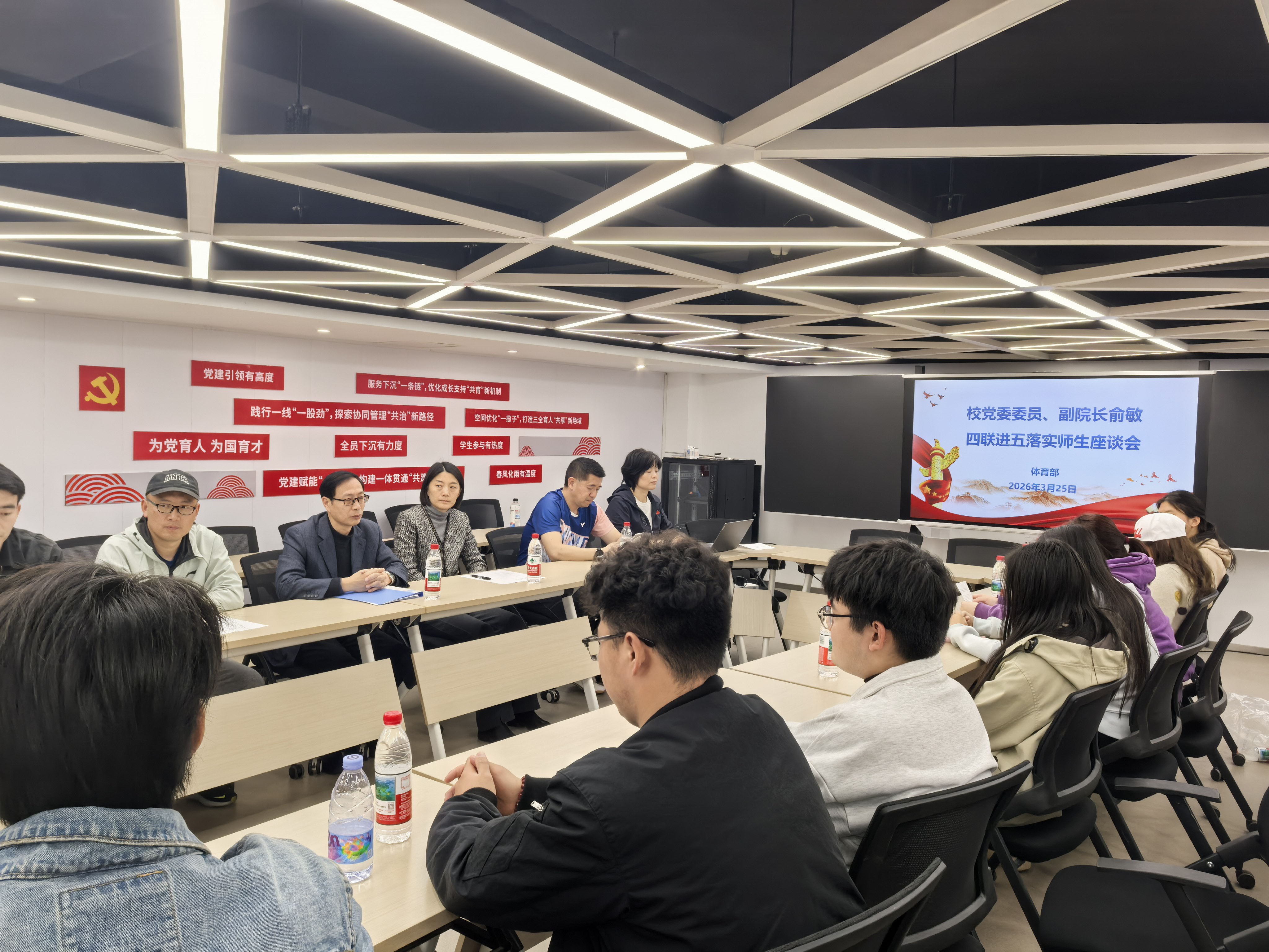 本次会议紧扣“四联进五落实”工作要求,以青年成长与体育育人深度融合为核心,首先开展了“习近平总书记与大学生在一起”读书心得分享环节。师生代表结合阅读感悟,畅谈新时代青年的责任与使命,把总书记对大学生的殷切期望融入体育学习与生活实践,现场交流氛围热烈,让红色思想浸润青年心灵。