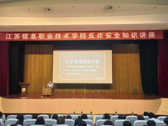 为切实提升我院学生防范电信网络诈骗的意识和能力,维护校园安全稳定,10月15日,学院特邀无锡市公安局惠山分局藕塘派出所民警蒋子演来校,为全体同学作题为《青春不欺·校园无诈》的反诈安全知识专题讲座。