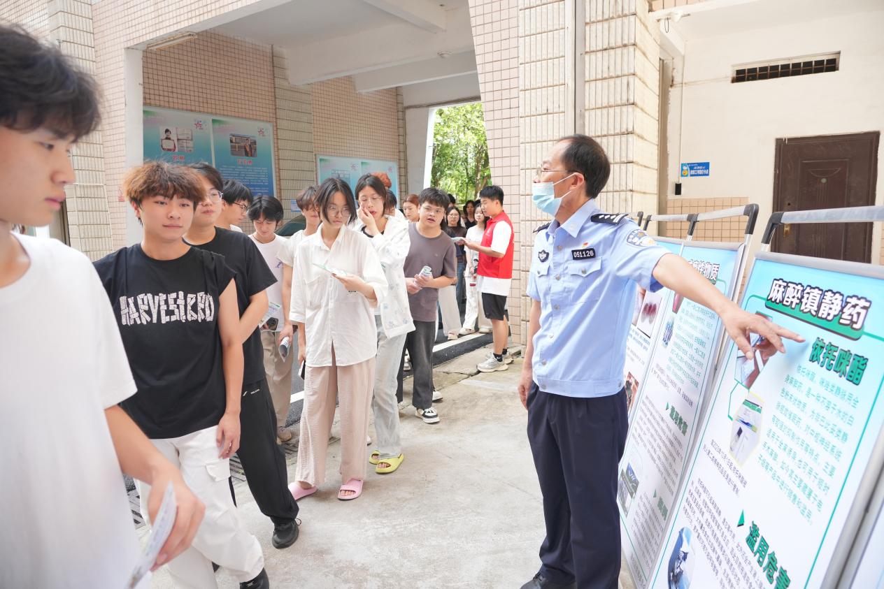 禁毒办民警和学校领导现场讲解了各种毒品模型和宣传展架,带领师生了解毒品常见种类、基本性状和危害,以禁毒知识大转盘、趣味问答等形式,生动地将禁毒知识传授给大家。