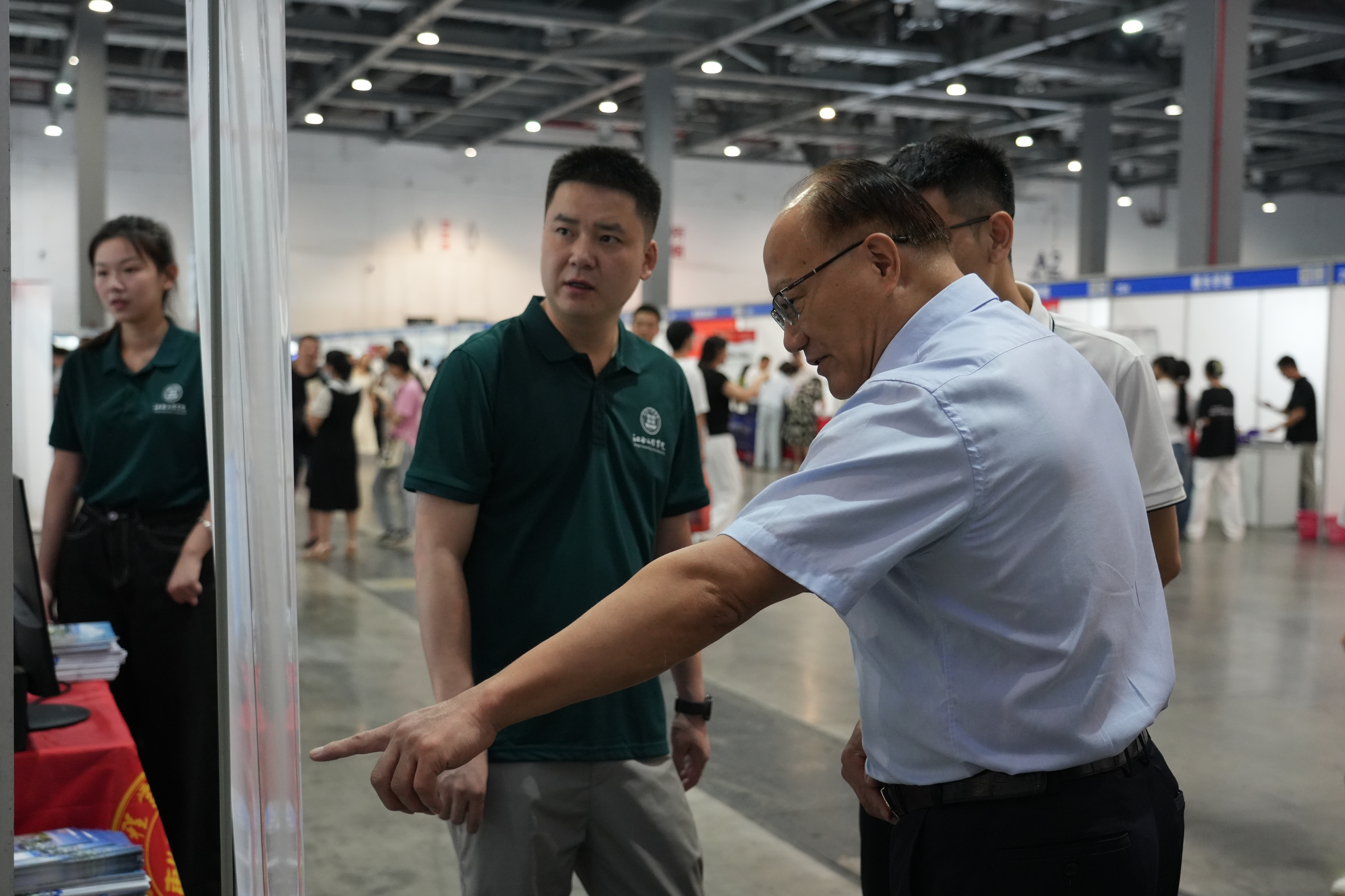 6月26日上午,江西工程学院党委副书记、校长刘新跃专程来到绿地·国际博览中心咨询会现场,亲自向考生和家长推荐江西工程学院,详细介绍学校的办学特色、学科优势和人才培养模式。同时,他还亲切慰问了坚守岗位的招生工作人员,对大家的辛勤付出表示充分肯定和衷心感谢,鼓励大家继续以饱满的热情和专业的态度做好招生咨询工作。这一行动充分体现了学校对招生工作的高度重视,对考生及工作人员的深切关怀。党委委员、理事长助理、校长助理乐俊杰陪同。