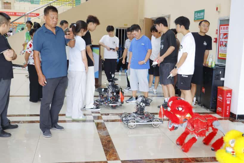 科创展示区人气高涨,学校曾获奖的机器人成为现场“活教材”。英雄、步兵、哨兵机器人依次演示,展现强劲性能与智能魅力。指导老师郜永生介绍,这些是学长学姐全国大赛获奖作品,异形足机器人还能在雨天探测积水路段指引路线。