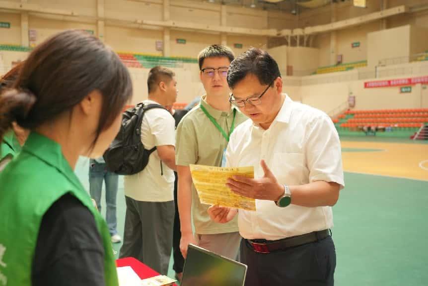校党委书记、督导专员魏建克走进迎新现场,用“欢迎加入江工大家庭”等亲切问候拉近与新生距离,倾听其对江工的初印象并鼓励成长。他还与志愿者、工作人员交流,了解报到流程与后勤保障,肯定其付出,强调迎新是学校风貌窗口,要求各单位强化服务、协同配合,确保新生顺利报到。